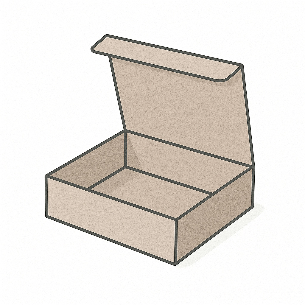 N式箱は、フタと本体が一体化した構造で、差し込み式のフタを持つ箱です。焼き菓子や乾物、茶葉などの軽量食品の包装に適しており、さまざまな食品分野で活用されています。