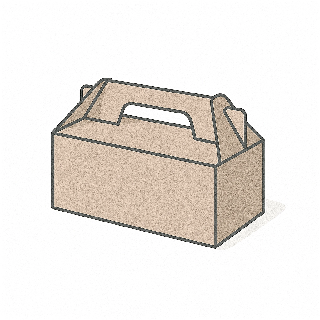 キャリー箱は、食品を入れる部分の上部に取っ手がついている箱です。持ち運びやすさを重視した設計で、サンドイッチなどのテイクアウトや、ケーキ、果物などの持ち帰り用パッケージとして幅広く利用されています。